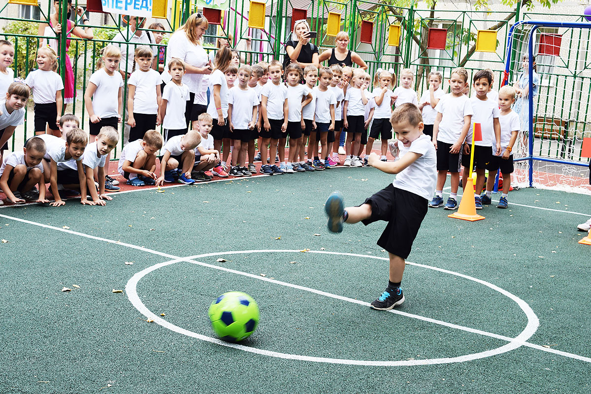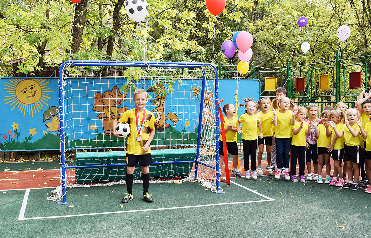 В нашем дошкольном учреждении созданы все условия для реализации проекта «Футбол — детям»: оборудован мини-стадион с футбольным полем, футбольными воротами, имеется форма для детей, эмблемы, футбольный инвентарь. Работа с детьми по реализации проекта проводится как дополнительная образовательная услуга.