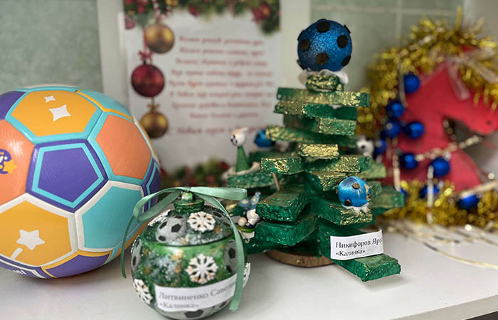 В нашем ДОУ прошел конкурс «Футбольная новогодняя игрушка». Участниками стали воспитанники старше-подготовительного возраста. Обучающиеся своими руками изготовили украшения на новогоднюю елку на футбольную тематику. Лучшие работы украсили выставку с фотографиями конкурсантов.