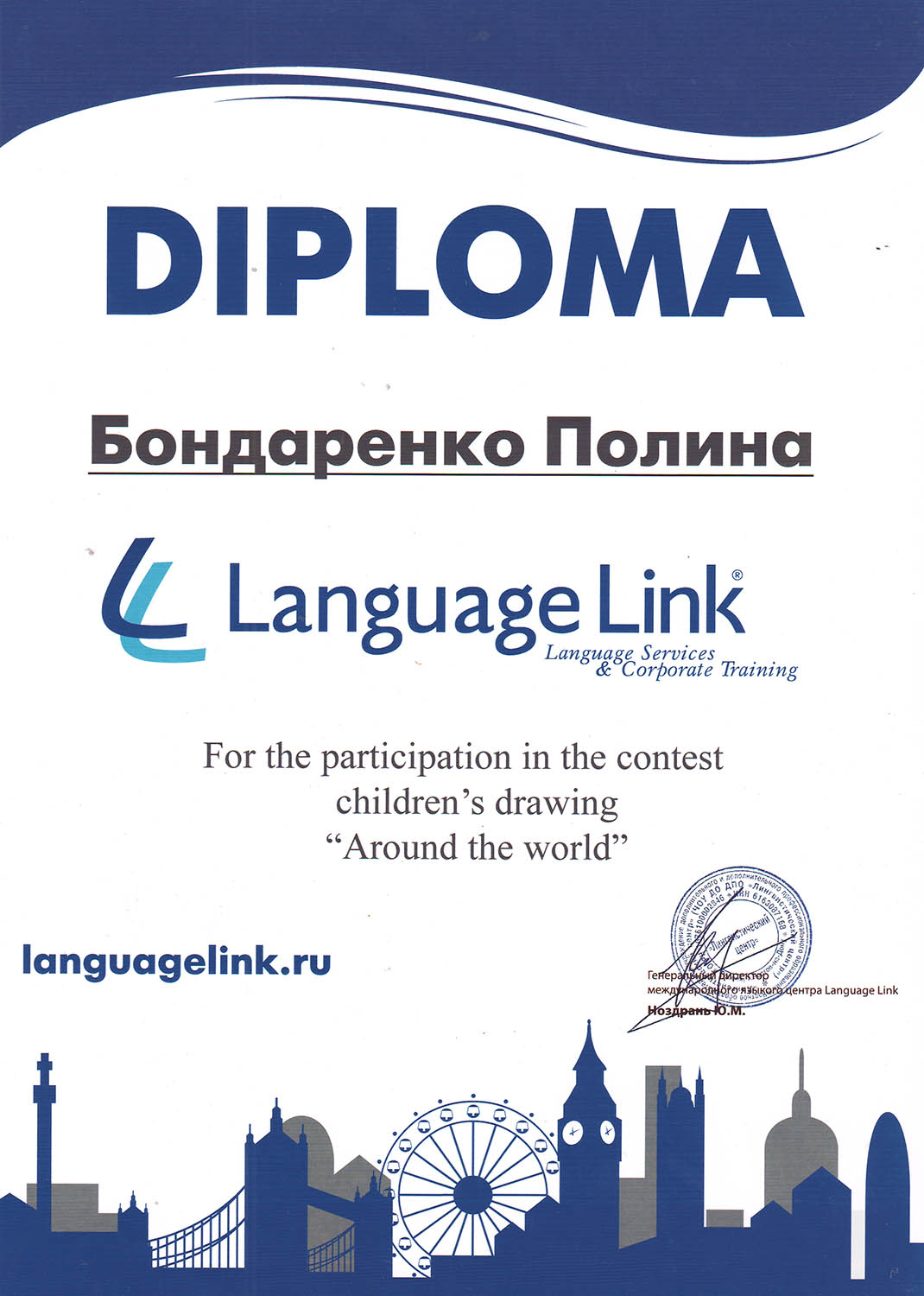 Воспитанница детского сада Бондаренко Полина (4,5 года), занимающаяся в кружке художественной направленности "Веселые кисточки" под руководством педагога Осмининой Марины Александровны, принимала участие в конкурсе детского рисунка "Вокруг мира" и была награждена посещением в центр "Лабораториум". Поздравляем!!! Диплом